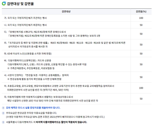보시면 아시겠지만, 일반적으로 하는 요금감면 대상자들은 다 되는 듯 합니다.