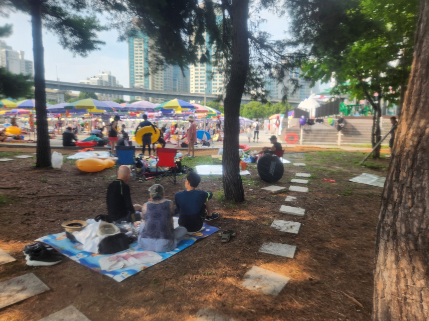파라솔이 있는 곳은 굉장히 더운데, 나무 아래라 그런지 굉장히 시원했습니다.