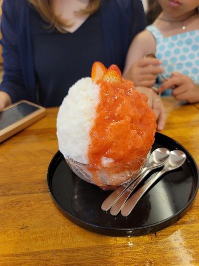 저희 아이들의 최애 딸기빙수입니다. 저희 아이들은 이 빙수만 먹습니다. 그런데 오늘은 조금 달랐어요. 첫째가 제 팥빙수를 한 입 먹더니.... 빼앗아갔습니다....ㅠㅠ 그만큼 맛난다는 거겠죠.... 팥빙수를 다 먹더니 다시 딸기빙수로 돌아가더라구요....