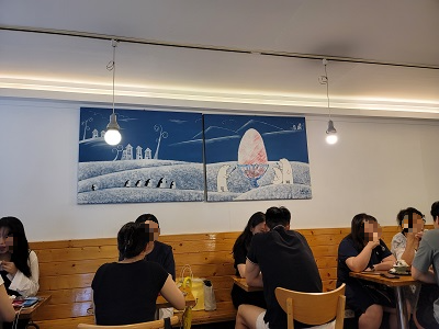 부암동 부빙 안에는 저런 그림들이 많이 걸려있습니다. 그리고 그 아래 DAEUN이라고 작가님 이름이 쓰여져있습니다. 그리고 부빙 안에 모든 그림이 다 다은작가님이 그리신 것 같아요^^
