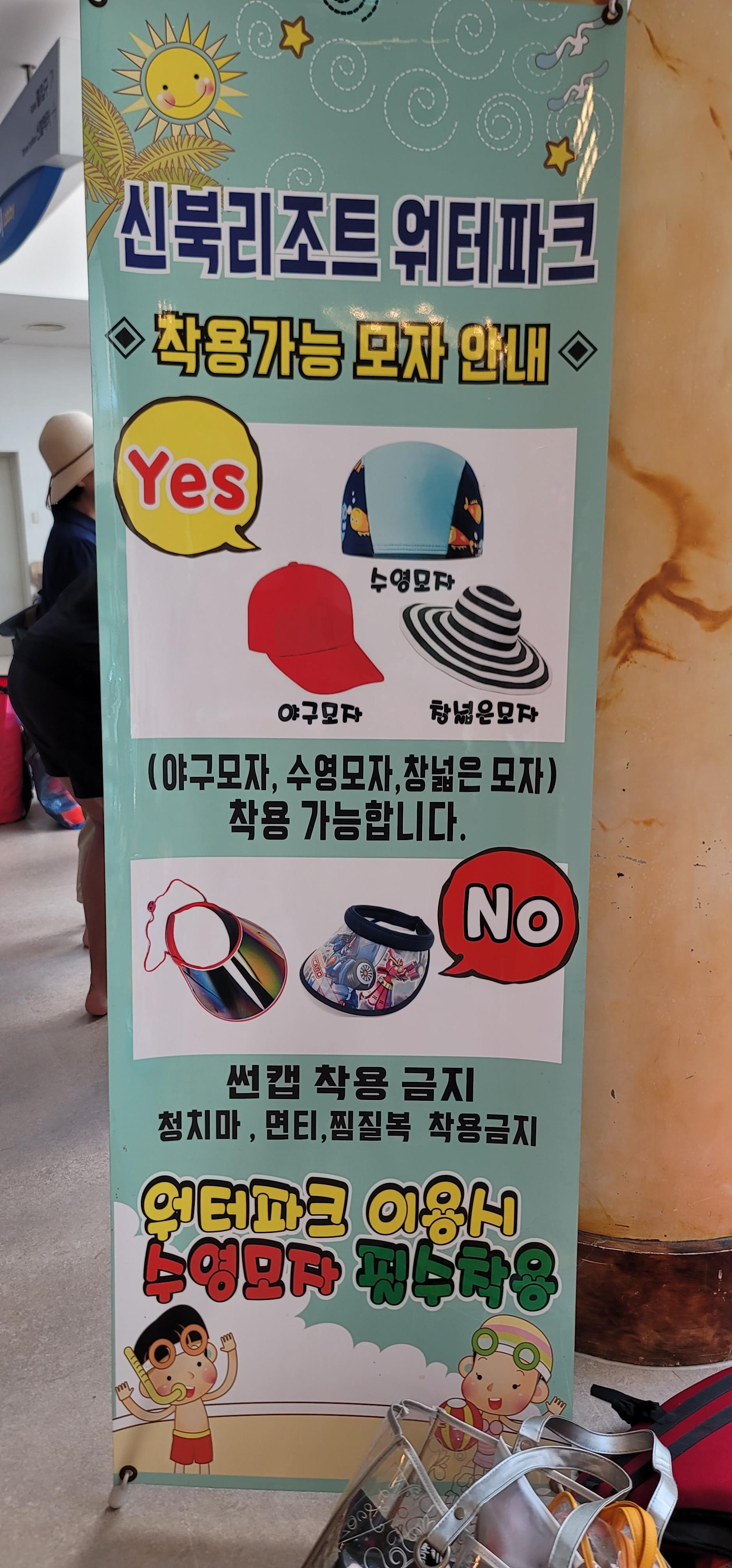 수영복, 구명조끼, 수영모자 또는 캡모자(썬캡 착용 불가), 튜브, 아쿠아슈즈, 갈아입을 옷, 세면도구 등등입니다.