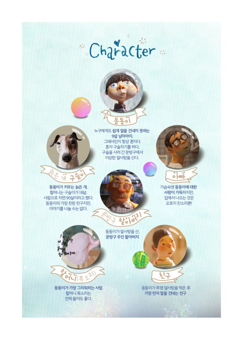 외로움을 타고, 함께 놀고 싶지만 친구를 사귀기 어려워하는 성격을 가진 동동이가 알사탕 5개를 할아버지 문방구에서 사면서 시작되는 스펙터클한....ㅎㅎ 역시나....스포는 여기까지...ㅎㅎ 보세요. ㅎㅎ 재미있습니다....ㅎㅎ