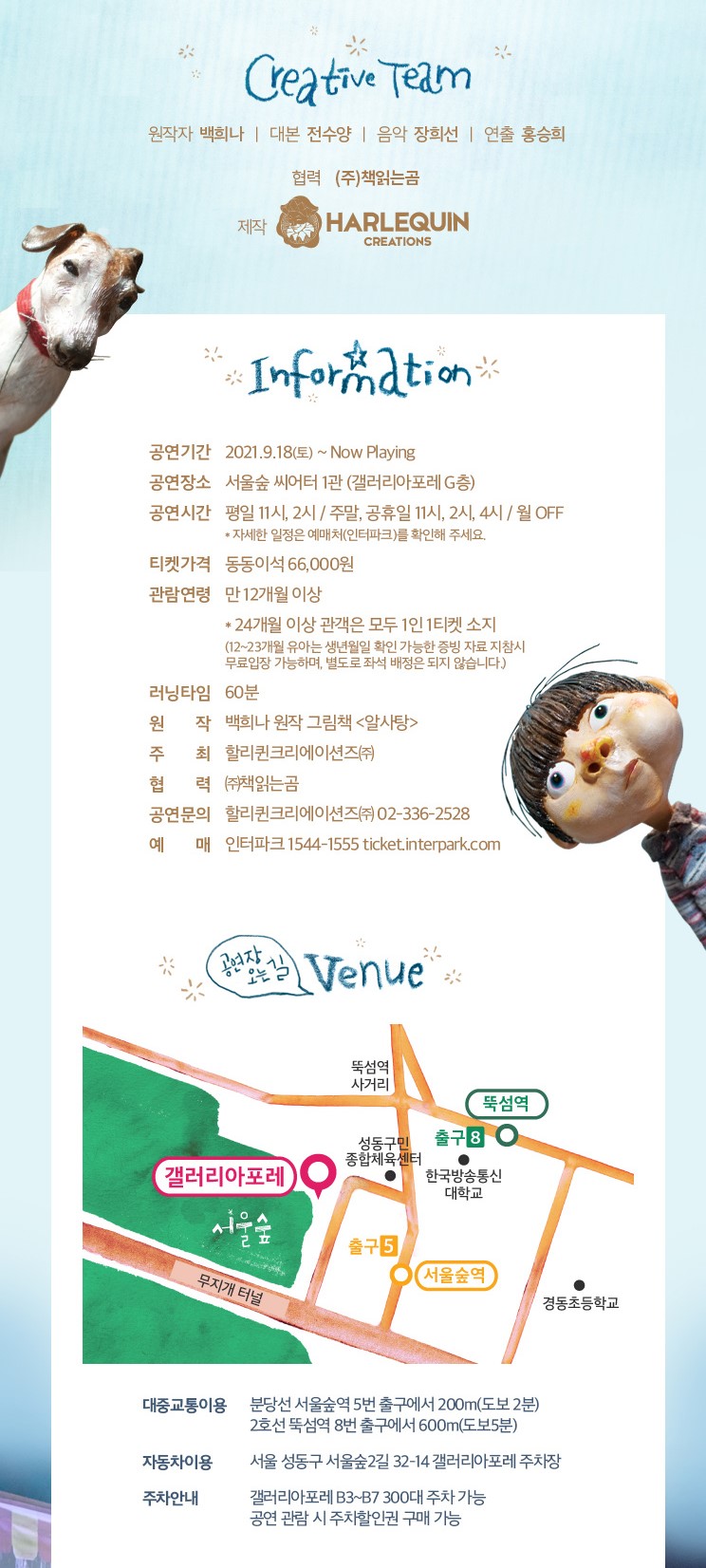 먼저 서울숲 씨어터의 공연 정보 및 주차에 대해 말씀을 드리면,