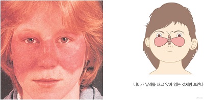 1) 먼저 피부 점막 증상입니다. 가장 흔하게 나타나는 증상입니다. 뺨에 나비모양으로 발진이 생기는 것이 특징이에요. 가렵지는 않지만 보기 흉하죠.