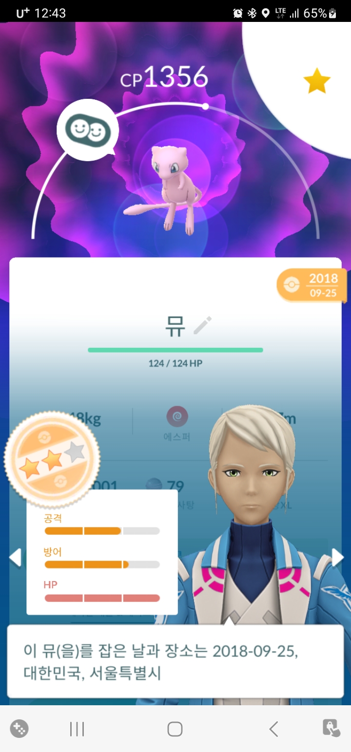 이렇게 포켓몬도 잡고, 퀘스트도 깨고 하다보면 트레이너 레벨이 올라가는데, 저는 레벨이 40레벨입니다....ㅠ