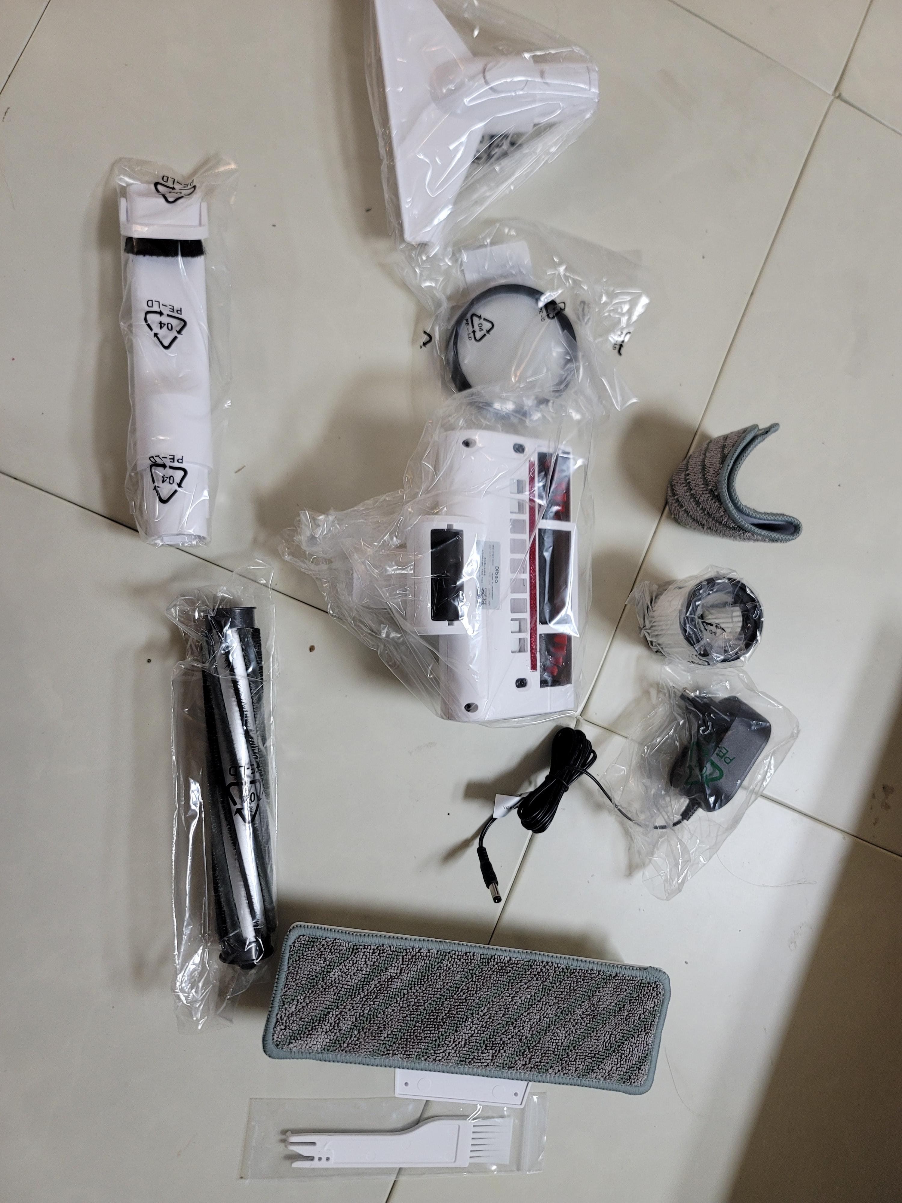 보시면 아시겠지만, 필터와 충전기와, 틈새브러쉬와 침구브러쉬, 물걸레용 브러쉬, 물걸레, 그리고 우리가 일반적으로 쓰는 길쭉한 청소 브러쉬들이 있네요.